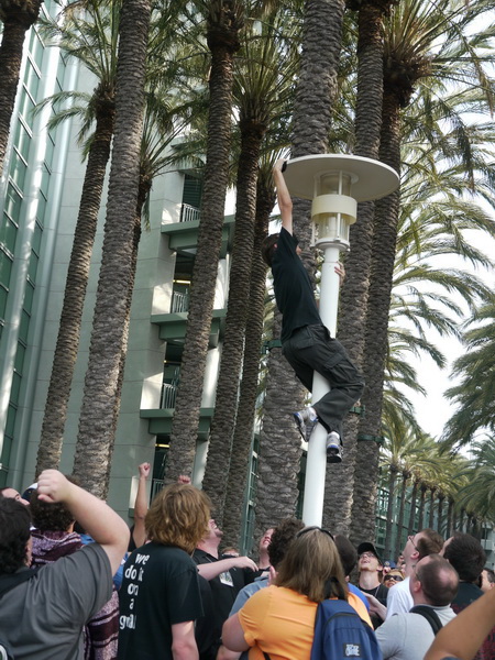 | 廠商送禮物 | 奮力爬上去拿 T 恤 |
