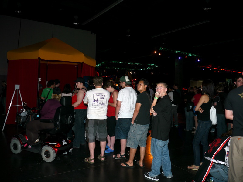 | 玩家聚集 | 化妝師幫玩家裝扮等攤位吸引許多人排隊 |