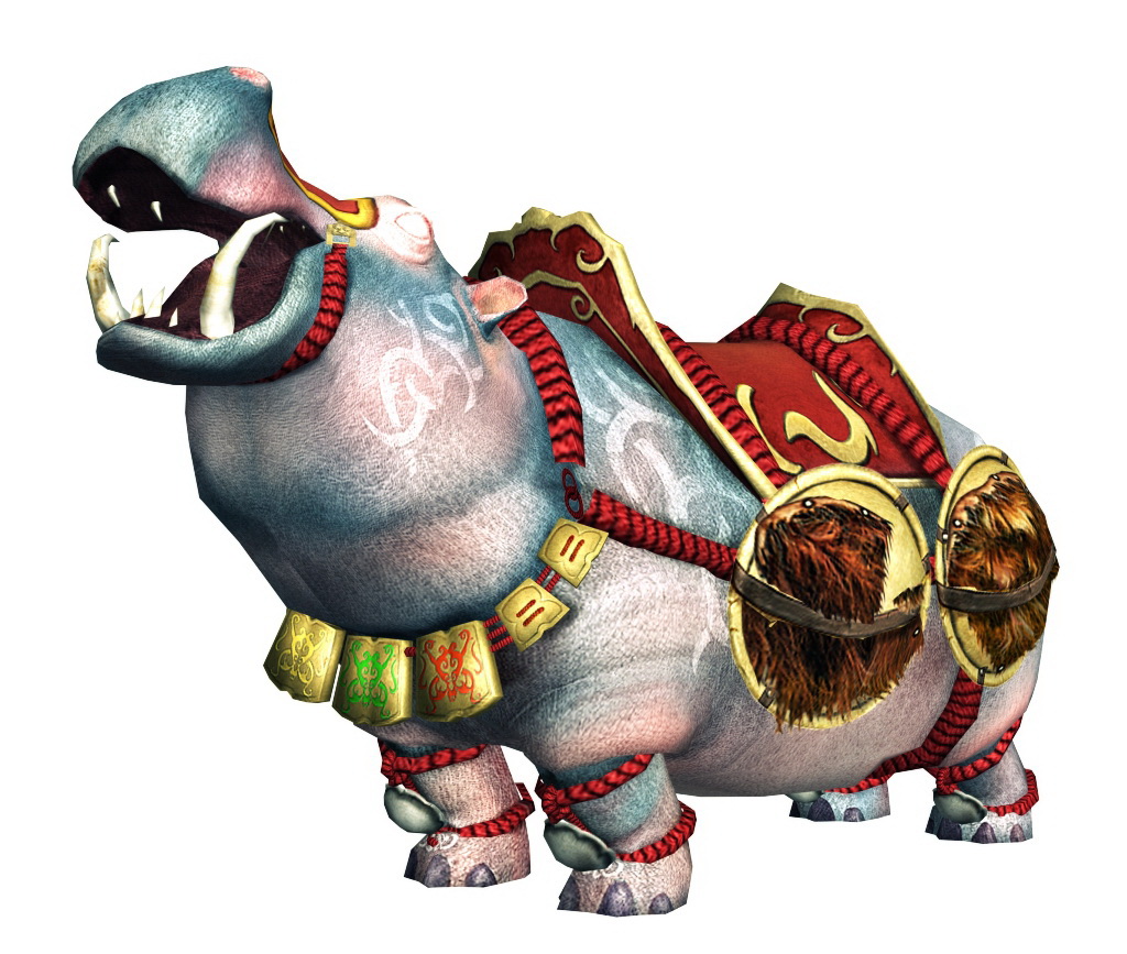 平定河獸之亂。經過兩百回合的水中纏鬥,程普終於降服這隻巨型河馬。身高過矮的程普一直苦無座騎代步,他也覺得「馬匹哪能彰顯俺的男子氣概」,再看看這頭水陸兩棲的巨牙多威猛啊,夠闊氣!他便將之納為自己的狂暴座騎。巨牙和程普可不是普通的投緣,排出的瓦斯都很臭,需求的食量都很大,而暴走度更有得拼!