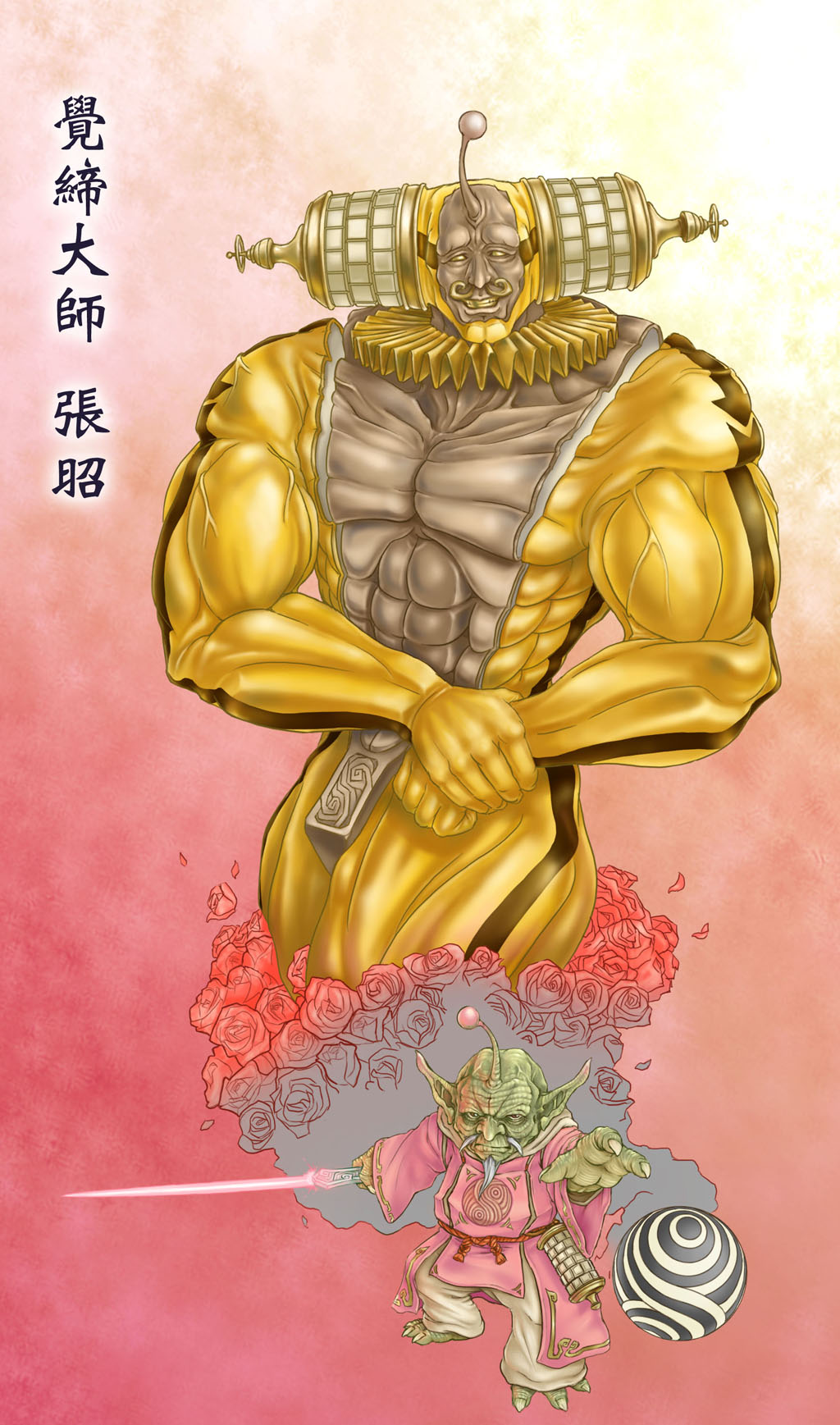 張昭的歲數是個祕密,但地球人都看得出來他年事已高。隨著年華逝去,張昭的駝背越來越嚴重,不時為關節炎所苦,但當他跨上武場,那精妙的戰術、體術以及光劍劍術永遠令人嘖嘖稱奇。他雙手推動的乾坤太極輪會以詭異的方式膨脹,化為無法抵擋的魔球。