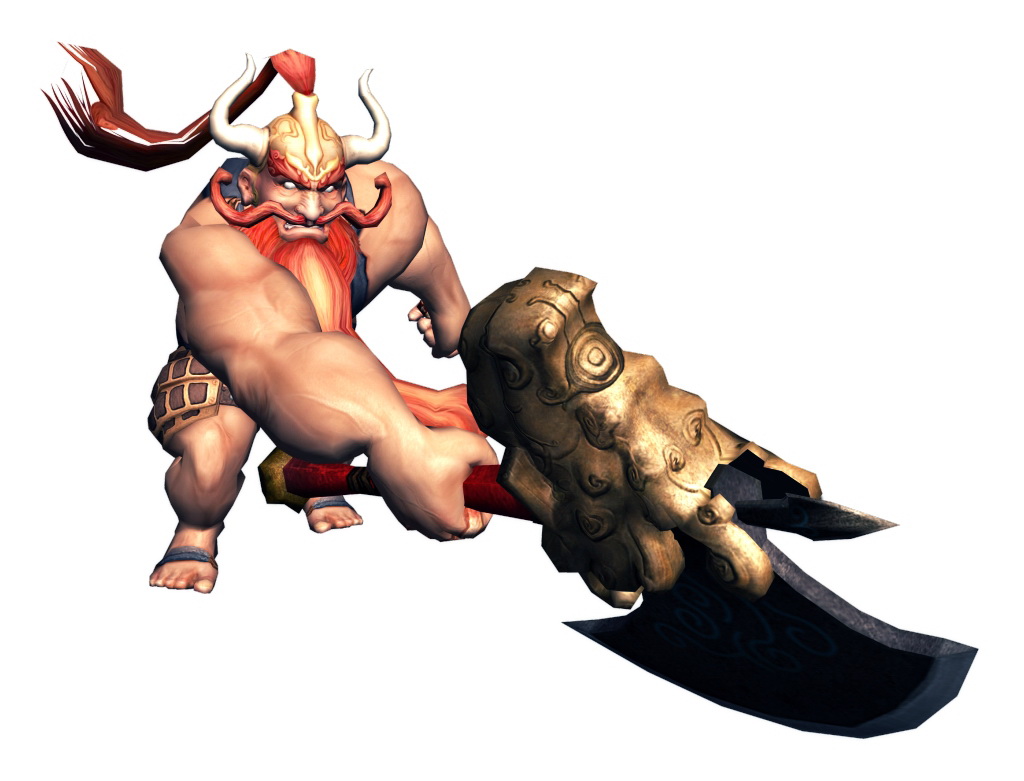 矮人程普自小深黯水性,漂流渡海時更長泳數月,竟練就一雙發達如巨人的健壯手臂!大手搭配闊面巨斧就是程普最傲人的武器,雖然攻擊動作看起來亂七八糟,殺傷力絕對一等一。他的下盤斬常人根本難以防禦,斧頭拋擲可是氣力萬鈞,還有那從游泳中領悟的詭異拳法,更讓戰場上的他活像頭大發牌氣的非洲雄獅。