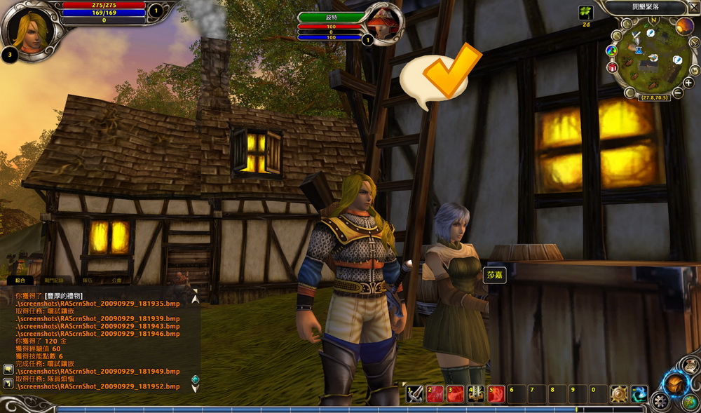 | NPC 頭上的黃色勾勾表示有任務可回報 |