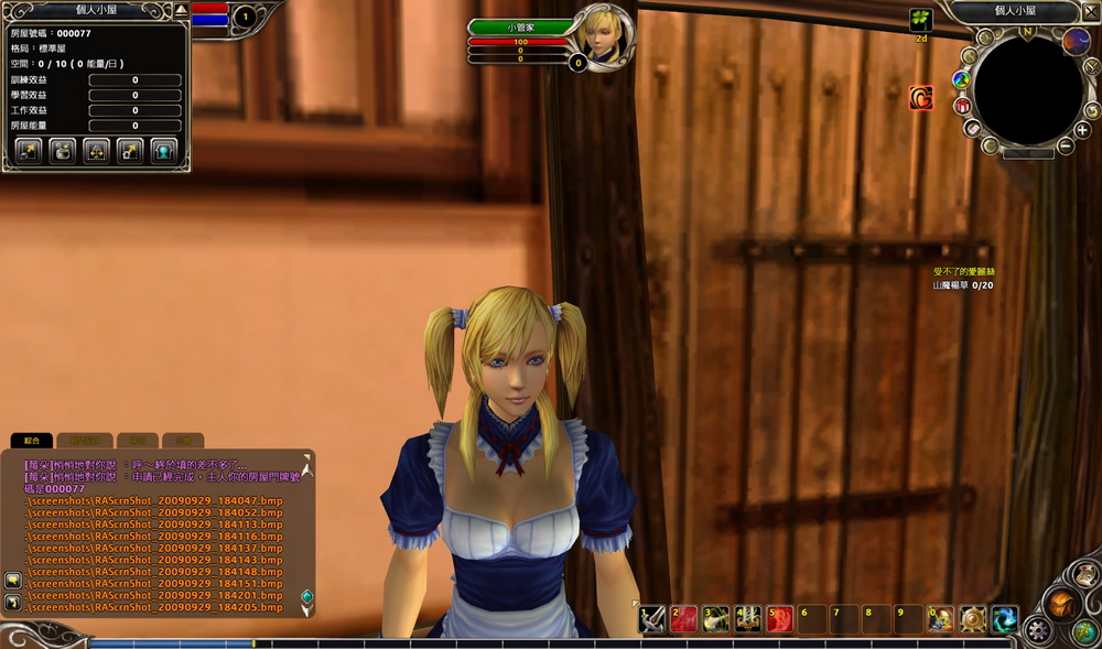 羅格鎮的任務數量及類型可是比新手村多很多,而且在這裡玩家馬上就能擁有自己的房子。不用花好幾百萬,不用繳房屋稅,只要找到鎮長「喬治」,和他左手邊可愛的女僕對話就行了。第一次申請小屋成功後,系統會送一個置物寶箱,讓玩家可以親自在自己的小屋中進行擺設,不管玩家想正放、橫放、黏牆壁放還是放屋頂上,都能隨心所欲喔!