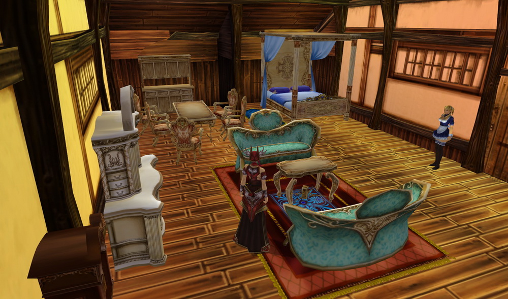 至於置物寶箱算是功能型家具,是可以存放道具的。當然除了置物寶箱以外,遊戲也提供了各類家具,像是「木桌、雕花石桌、沙發、木椅、書櫃、盆栽、床、人型衣架」等等,應有盡有,滿足玩家佈置自己愛的小窩的夢想。另外,這個個人專屬的女僕管家,除了提供房屋功能外,也提供銀行服務,讓玩家可以存放道具。