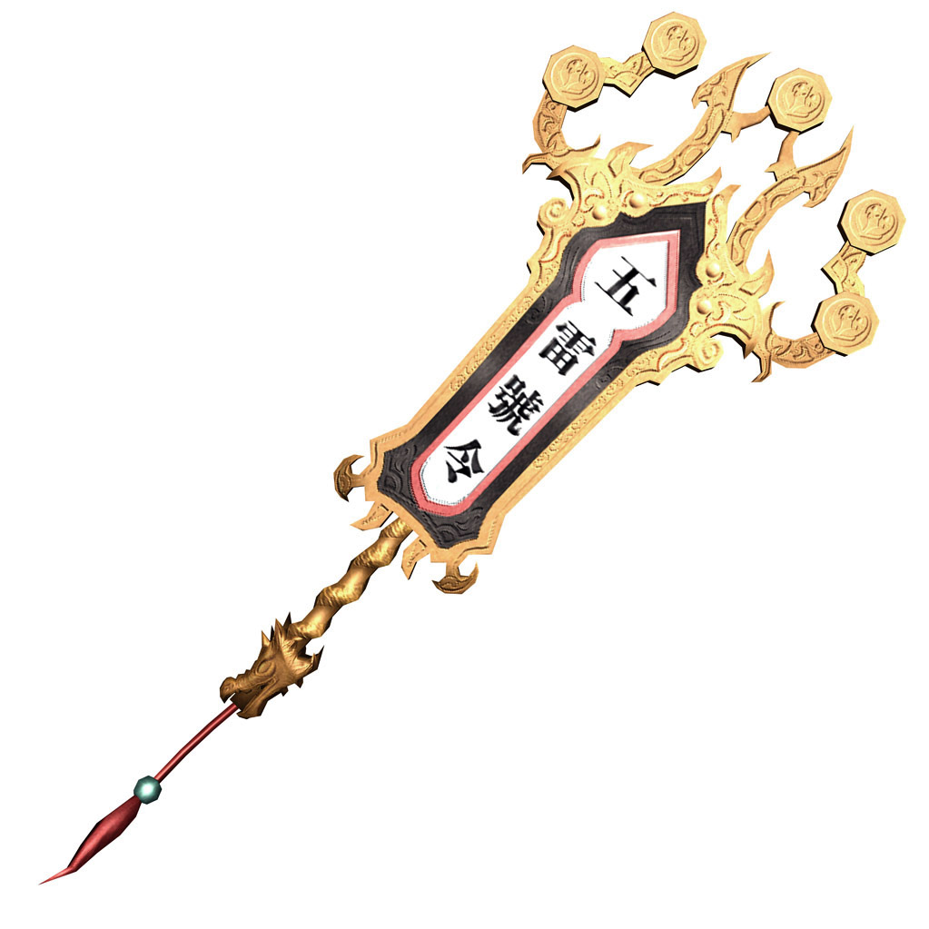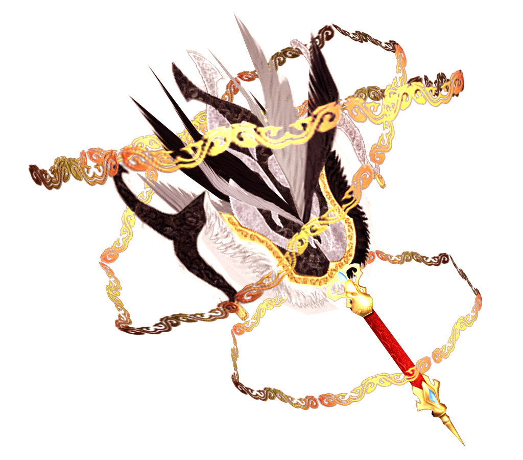 黑白對稱的「子午陰陽扇」是司馬懿專用的魔法葫蘆扇。扇身同時擷取了子時太陰的漆黑之力與午時金烏的陽剛之氣。這兩股力量互相衝撞的結果,反而激盪出巨大的異端法力。若司馬懿解開拘束法咒,子午陰陽扇將化為仙門的「璃光撫塵」與魔道的「鬼骨金杵」兩把截然不同的神器。