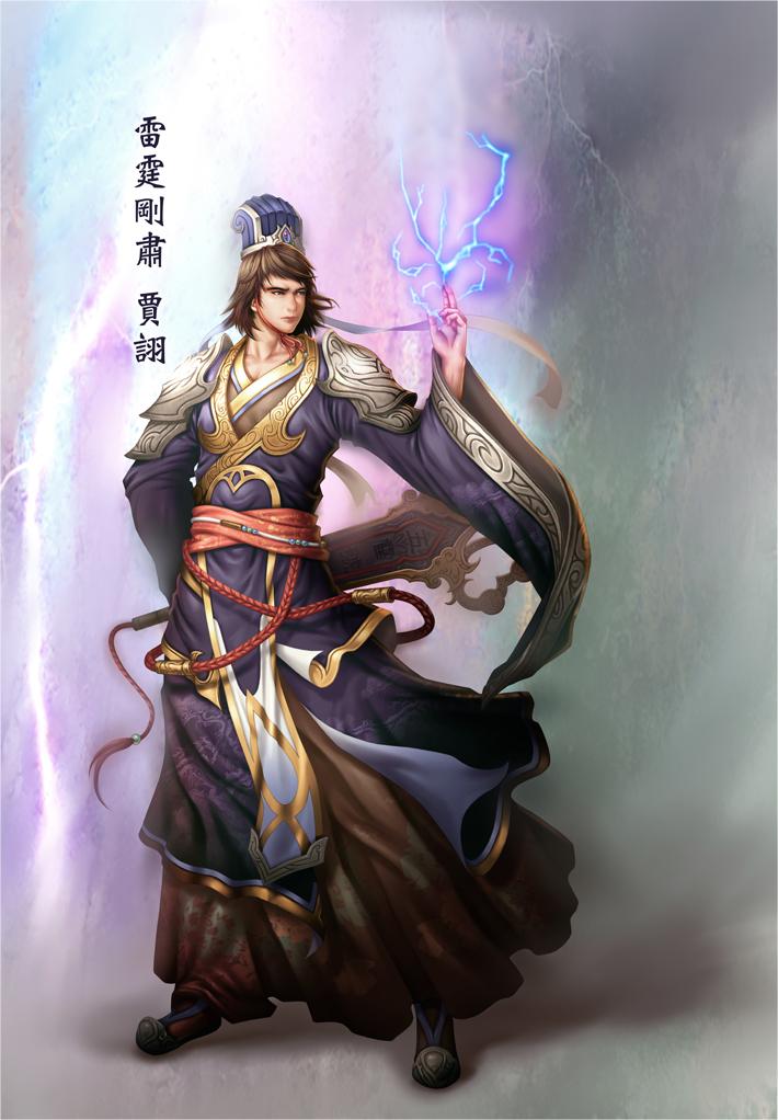 主動出擊的賈詡會以多重幻術分身戰鬥,讓人不知從何下手。敵人只能周旋於幻象之間,任何攻擊皆徒勞無功,此時雷系咒語詠唱聲不絕於耳,令人倍感壓力,幾近瘋狂。沒人膽敢接近這位面無表情、威儀堂堂的硬派美男,他們只想逃離那不斷落下的紫金閃電!
