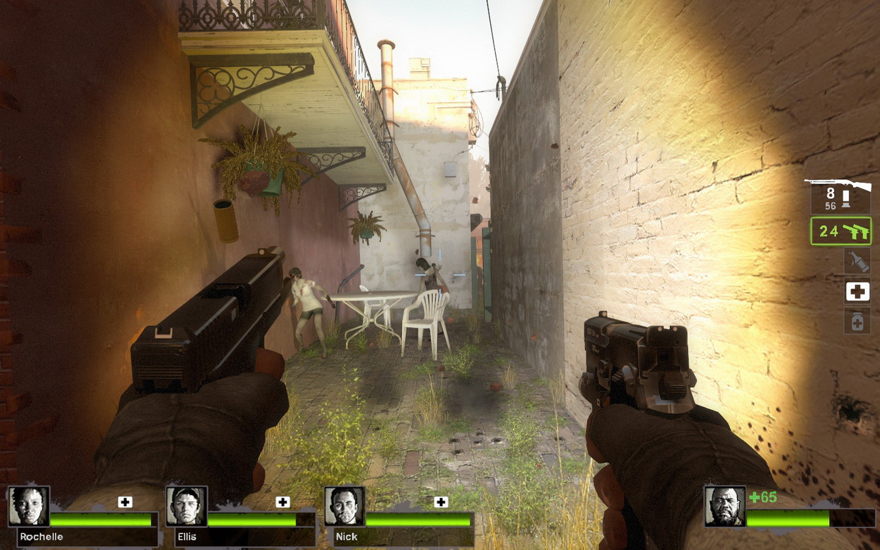 在前作中殺的爽歸爽,但總覺得武器種類有這麼一點不夠!玩家的心聲 Valve 聽到了,光是在這試玩版短短的兩個關卡中,可以撿到的武器就不少了。除了以前就有的衝鋒槍和步槍以外,還加入了更多霰彈槍、狙擊槍和新型步槍供玩家挑選。即使是一把小手槍同樣也有不同的選擇,看是要超大威力的麥格農手槍、還是 9mm 手槍一次來個兩把,扮演雙槍俠與敵人猛烈交火。
