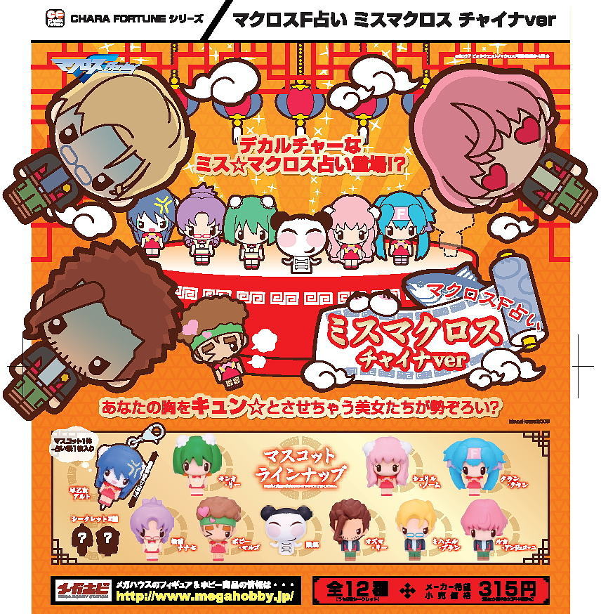 「ねんどろいどぷち ボーカロイド #01」 發售日期:11 月 製作單位:グッドスマイルカンパニー 定 價:6300 元(日幣) 備 註:12 個一組品 | 「マクロスF占い ミスマクロス チャイナVer.」 發售日期:11 月上旬 製作單位:メガハウス 定 價:7560 元(日幣) 備 註:24 個一組 | 「プロッププラスプチ マクロスF 劇場版」 發售日期:11 月 製作單位:BANDAI 定 價:4725 元(日幣) 備 註:10 個一組 | |||