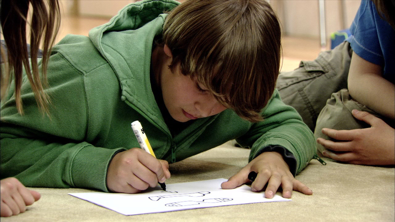 EyePet 拿筆出來窩在地板上畫畫,這時一邊感淚「吾家有寵初長成」,一邊感嘆好險牠不是真的畫在自家地板。