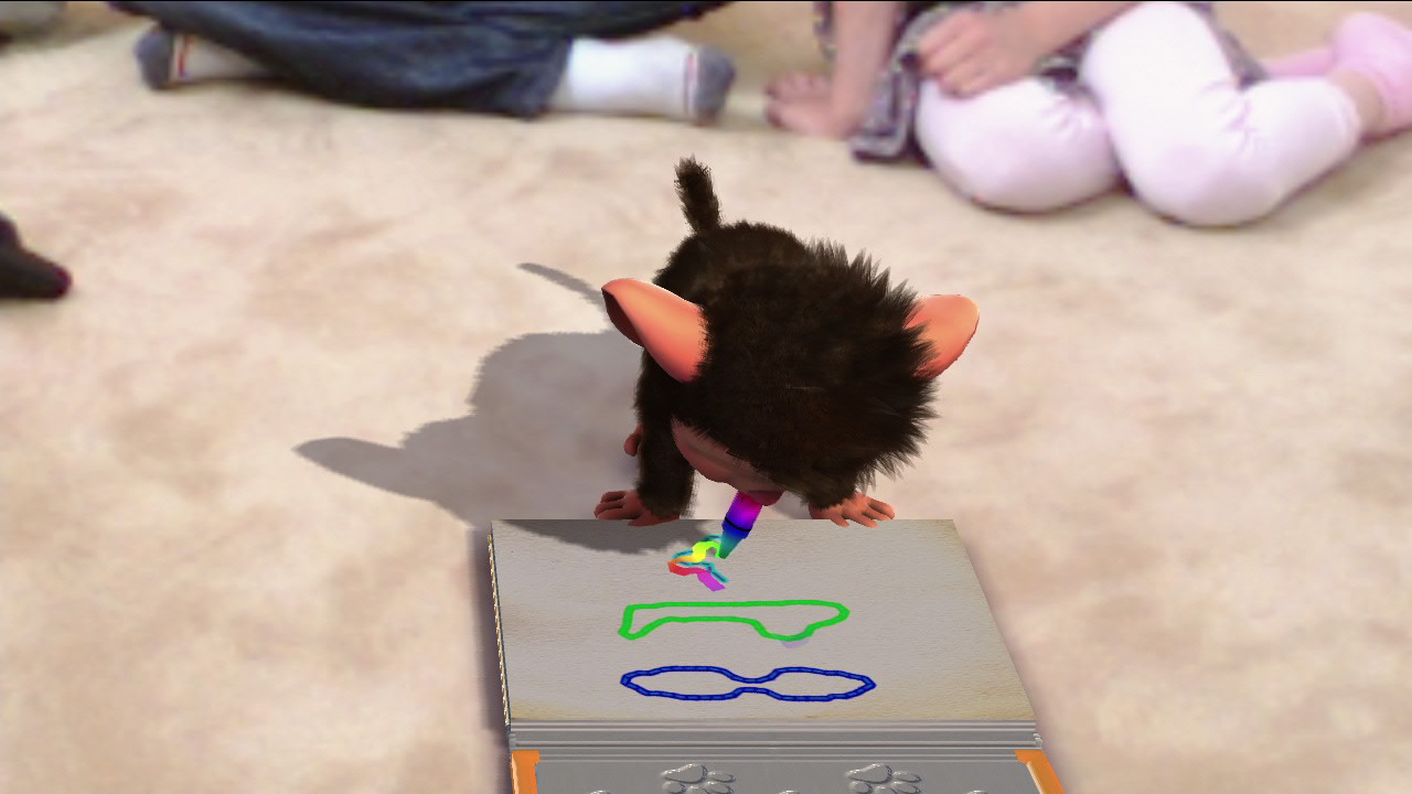 有鑑於可以進行的小遊戲眾多,版面卻有限,在此就先以「畫圖」這個噱頭滿點的項目來個體驗。玩家只要在空白紙上正中央畫下圖案後,依照畫面指示放在攝影機鏡頭前供其掃描辨認即可。雖然寵物的繪畫能力連複雜的多線條圖案也能辦到,但若希望寵物能畫出和草稿相似度高的成品,不妨把握線條間格、斷續明顯,筆畫適中勿過細等要素。