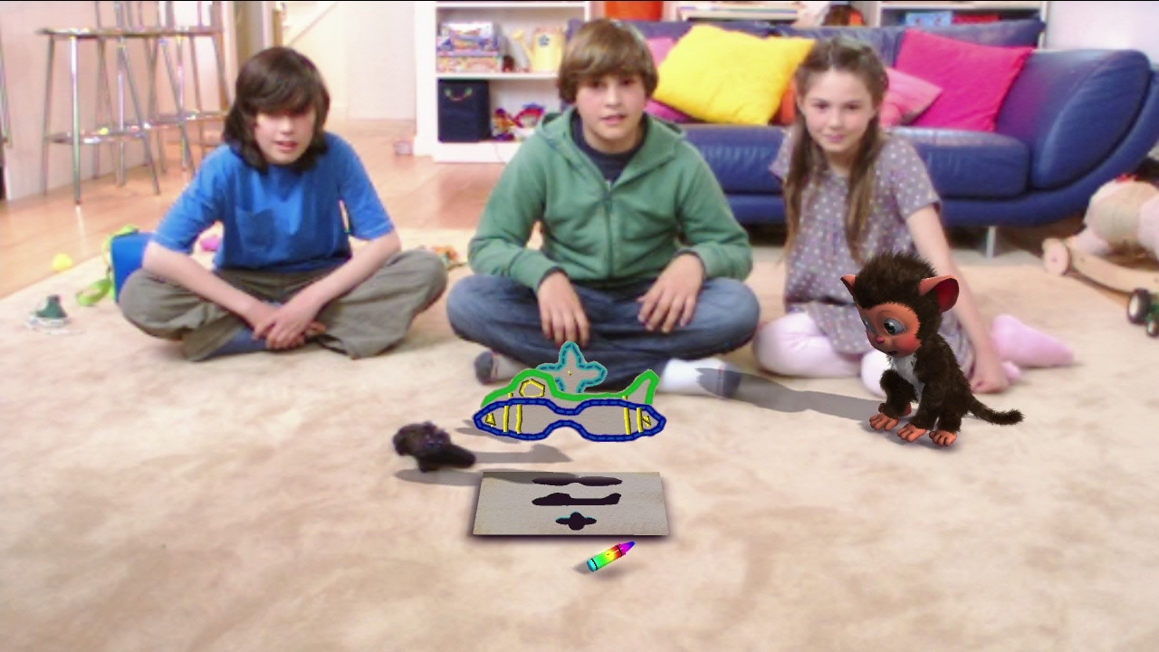 EyePet 魔法卡」開始發揮牠的最大功能,舉凡玩家和寵物間的遊玩、互動、餵食全部都得靠著這張卡片;若有天不小心弄丟也不用緊張,遊戲官網上就能下載圖樣,自行印製在 A4 紙上並貼到紙板上強化,同樣可以使用。