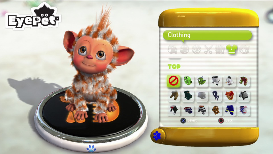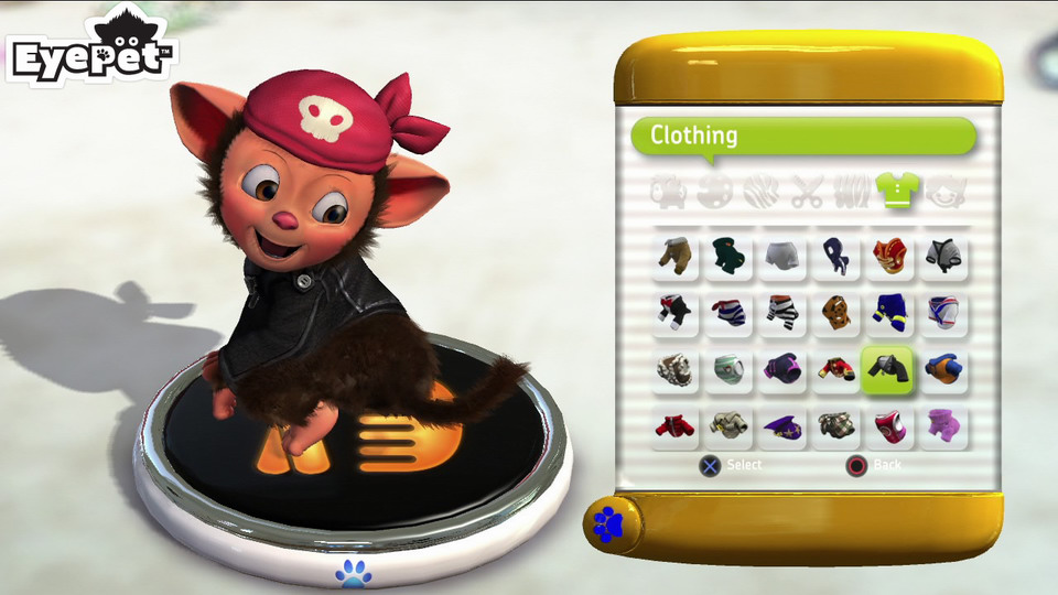 EyePet 內的造型系統,從毛色到配件應有盡有,基於寵物沒有性別之分,不妨發揮想像力,打造一個別出心采的內容。很有感覺的餵食系統,玩家需先以