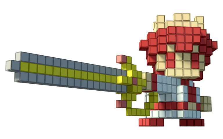 遊戲劇情描述很久很久以前在「點陣人王國」裡,有著 6 位賢者守護的 6 顆神力寶珠,但沒想到有天覬覦力量的黑暗魔王竟然抓走賢者搶走寶珠。失序的世界裡突然有個來歷不明的少年現身,封印魔王拯救賢者。轟動一時的英勇神話帶來了大量觀光資源,自各地前來的訪客絡繹不絕。不過當時間流逝,古老的勇者傳說不再吸引人潮,為了讓王國回復生氣。國王決定要從過去 2D 的世界變身 3D 世界,以全新景象重拾眾人注意力,直到又有個黑暗神官出現。世界再度瀕臨毀滅,這時候就換玩家挑起大樑,拯救世界。