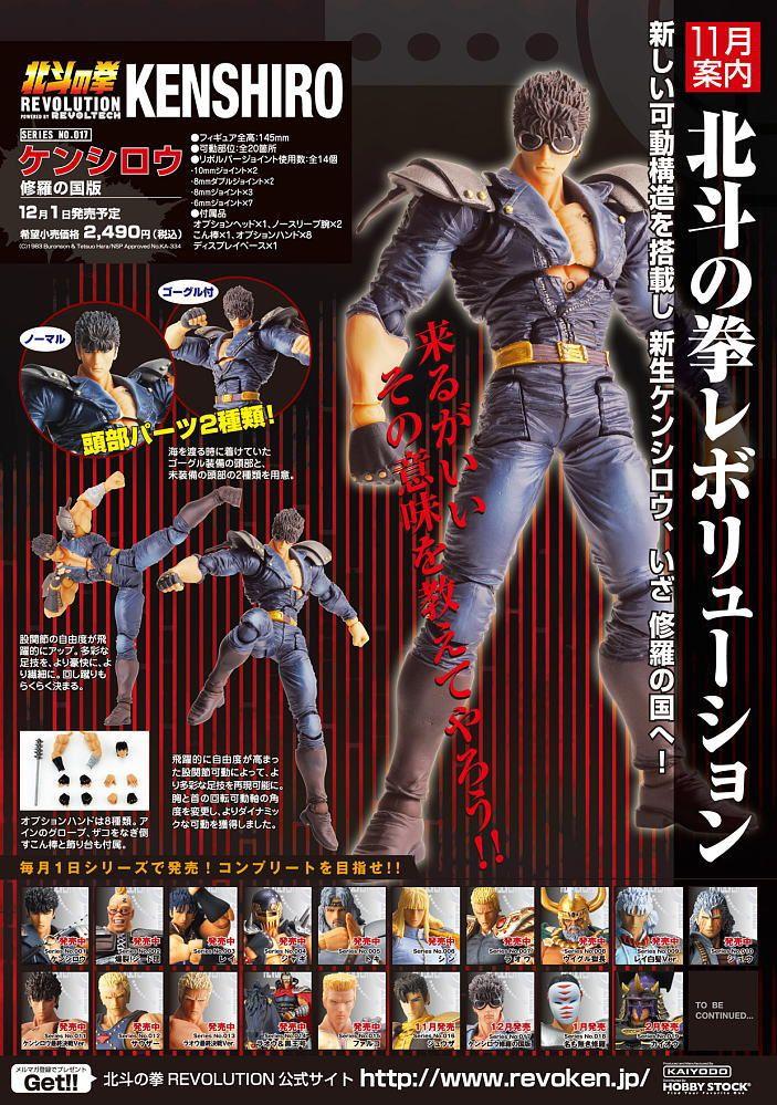 「リボルテック 北斗の拳レボリューション SERIES No.017 ケンシロウ 修羅の国版」 發售日期:11 月 製作單位:海洋堂 定 價:2490 元(日幣) 備 註:PVC 塗裝完成品,全高約 145 mm |