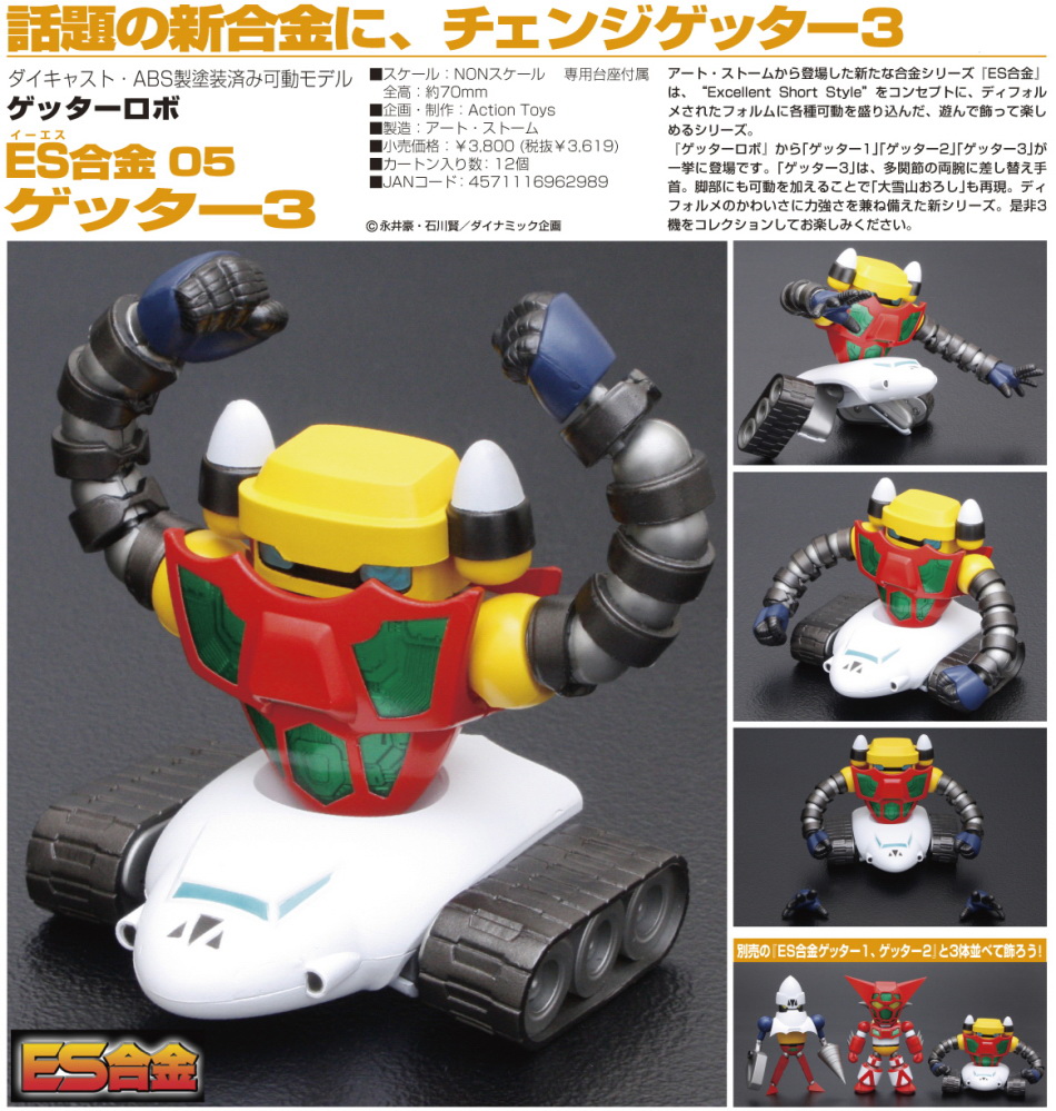 「ES合金05 ゲッター3」 發售日期:11 月 製作單位:ArtStorm 定 價:3801 元(日幣) 備 註:全長約 70 mm |