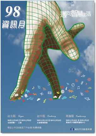今年即將邁入第 30 年的台灣年度指標性資訊展「98 資訊月」將於本週六(11 月 28 日)在台北世貿一館與三館盛大登場,以「邁向智慧生活」為主軸,由台北經台中、高雄,於全台北中南進行為期 1 個月的巡迴展出。