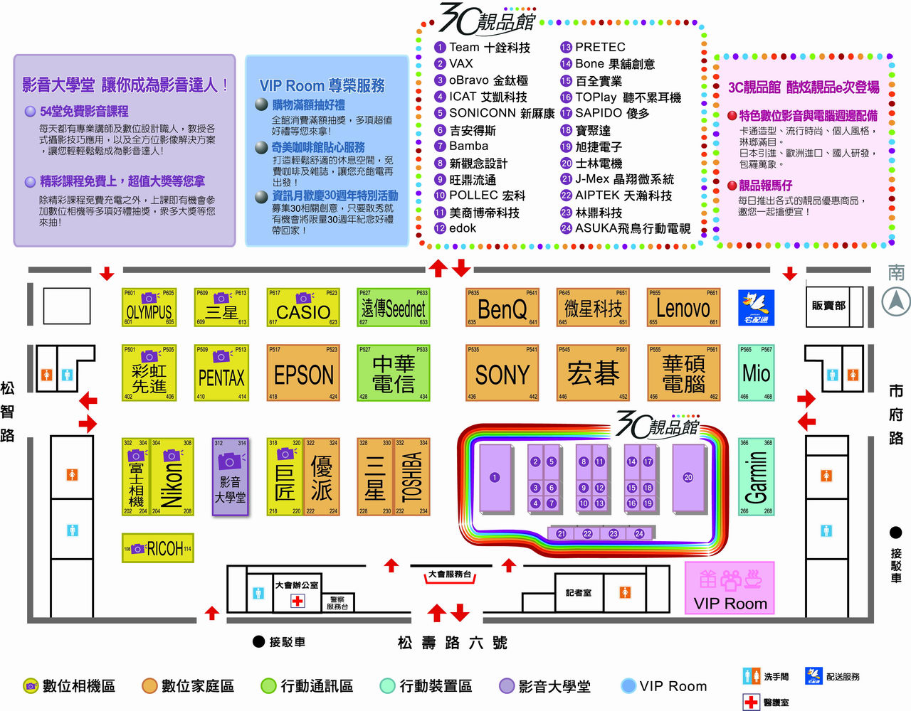 往年廣受好評的數位生活館「VIP Room」這次也沒有缺席,讓參觀民眾逛展之餘能有個輕鬆舒適的休憩空間,並有免費的咖啡、點心及雜誌,休息充飽電後再出發。活動區內除設置最新遊戲體驗區外,還有憑名片換雜誌的活動,另外於一、三館消費滿額,即可兌換滿額抽獎券,參加小筆電、智慧型手機、GPS 衛星導航等眾多獎品的抽獎活動。