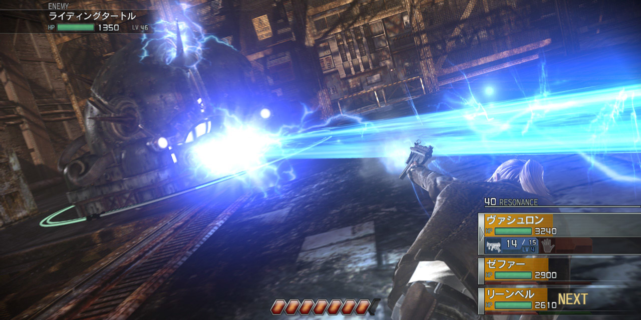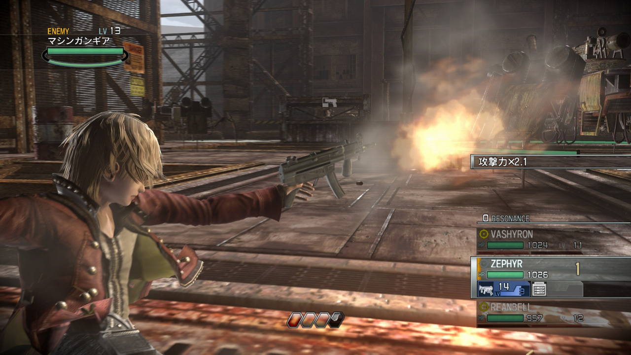 每個角色每回合行動都有 1 次攻擊機會,在決定攻擊目標並按下攻擊鈕後,就會進入「蓄力(Charge)」階段,此時角色會舉槍瞄準敵人並出現準星與環狀蓄力計量表,集滿 1 圈就可以發動攻擊,也可以累積多圈來強化攻擊威力,越接近敵人蓄力時間就越短。
