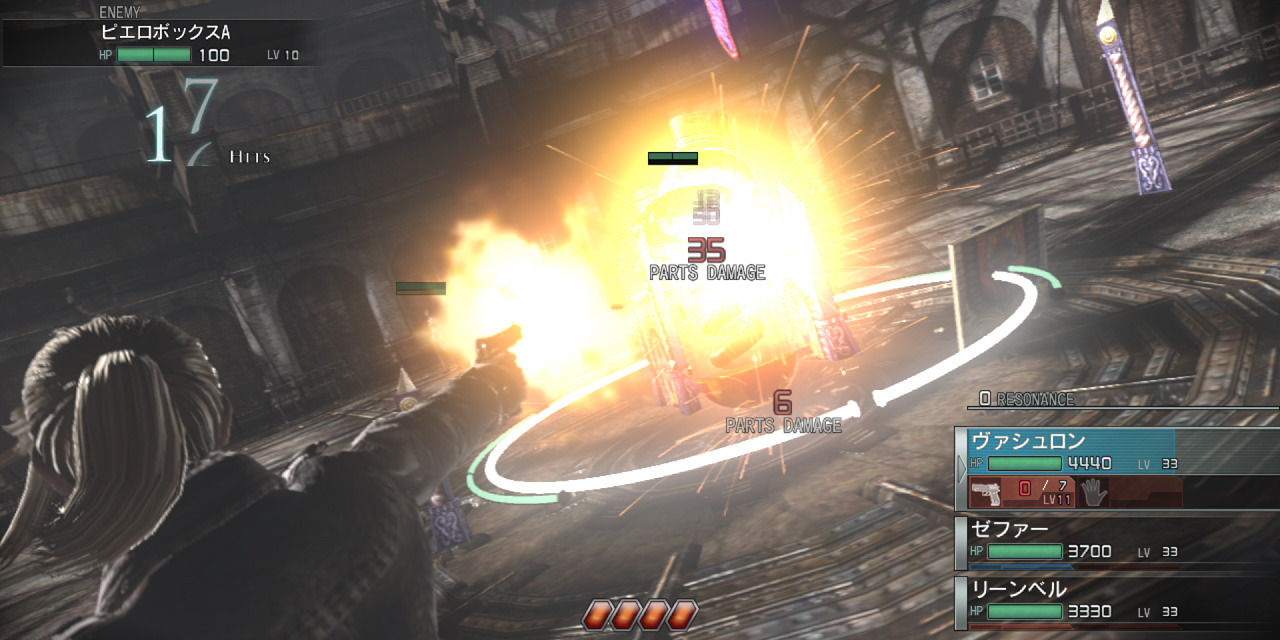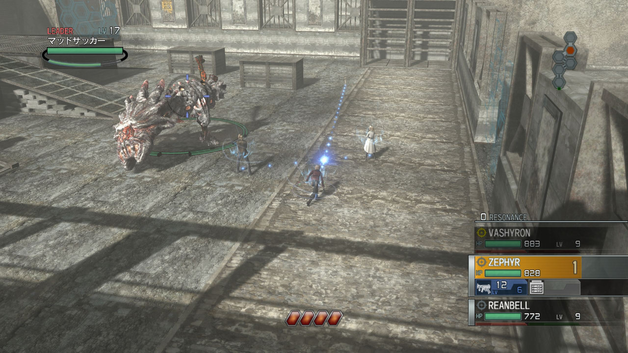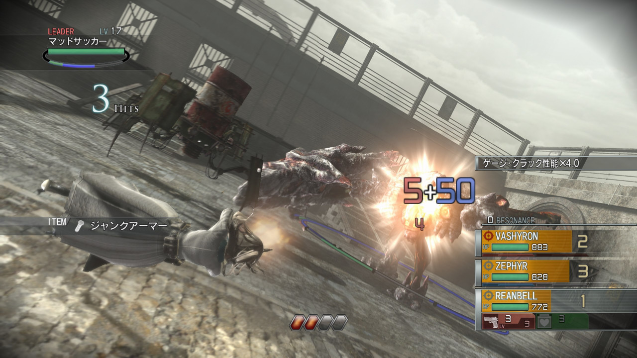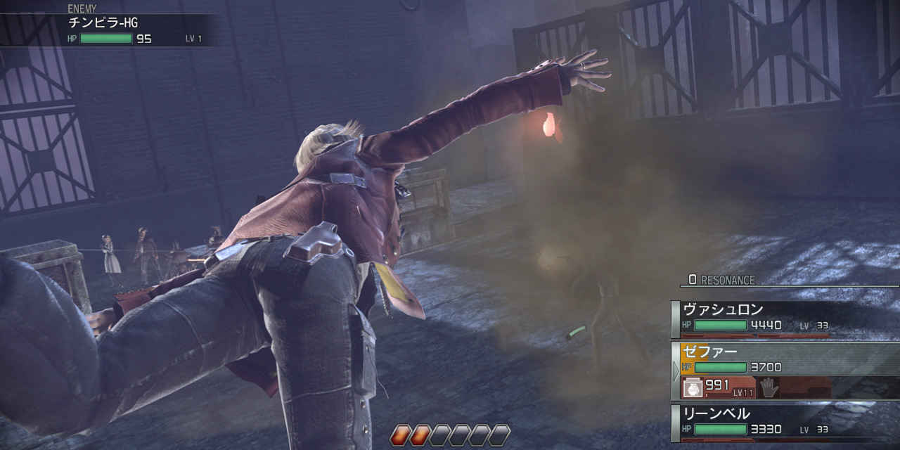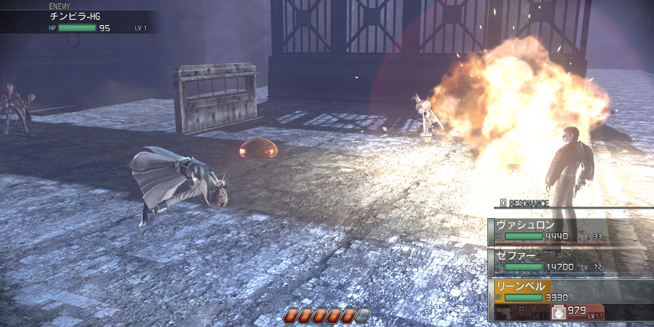 當無敵動作的移動軌跡穿越其他 2 名夥伴之間時,錨線會變為藍色,實際行動時會累積「共鳴計數(Resonance Count)」。當共鳴計數累積到一定程度後,3 名角色之間會出現連成三角形的紅色錨線,此時即可發動 3 人聯手施展無敵動作連續攻擊敵人的強力「共鳴攻擊(Resonance Attack)」。共鳴計數累積越高,發動共鳴攻擊的時間就越長。
