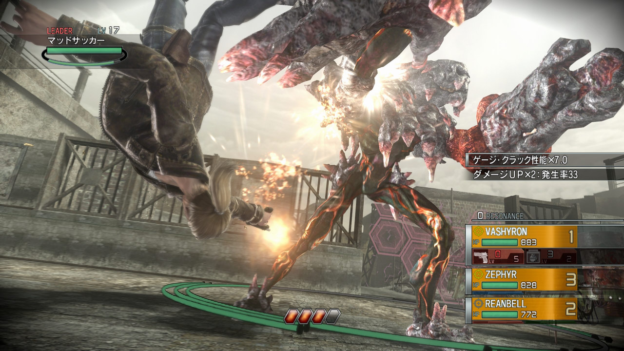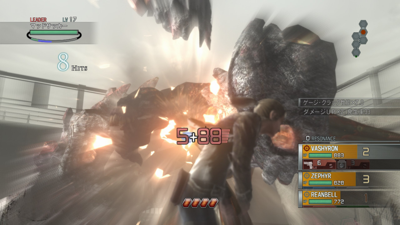 遊戲中的攻擊分為能確實造成敵人損傷的「直接損傷(Direct Damage)」以及損傷數值不確定的「暫定損傷(Scratch Damage)」,前者的威力較小但是能確實造成損傷,後者威力較大但造成的損傷可能會隨時間恢復。因此玩家必須妥善組合 2 種攻擊來提高戰鬥的效率,首先以暫定損傷給予敵人較大傷害,再以直接損傷讓傷害數值確定下來。