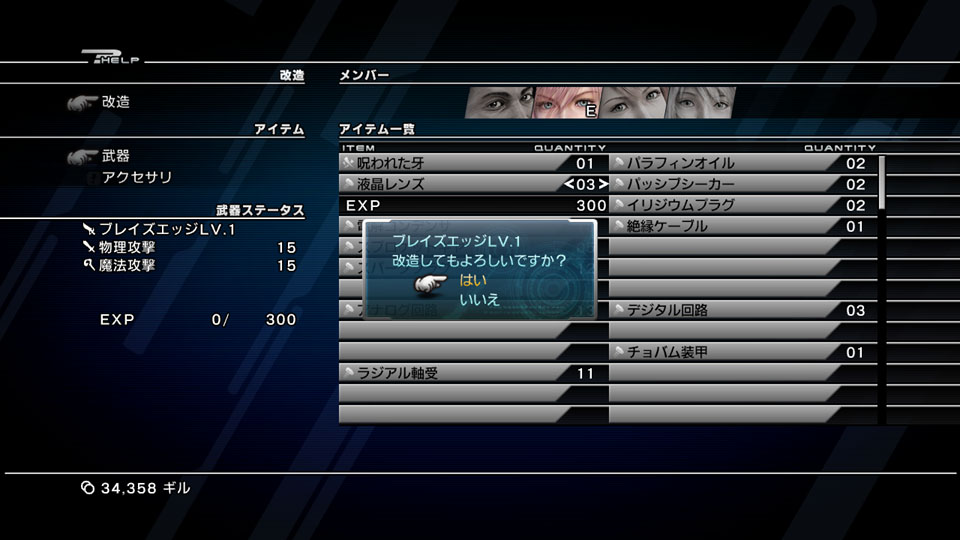 當使用素材來改造武器與裝飾品時,首先是選擇想要改造的武器與裝飾品,接著選擇欲使用素材的種類與數量。實際進行改造後武器與裝飾品的經驗值(EXP)會隨之增加。當經驗值達到一定程度後武器與裝飾品的等級就會上升,性能與能力也會隨之強化。