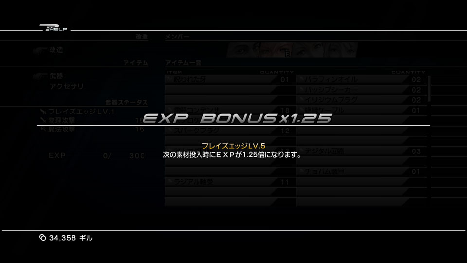 | 讓下次改造時的經驗值增加為 1.25 倍的特殊效果素材 |