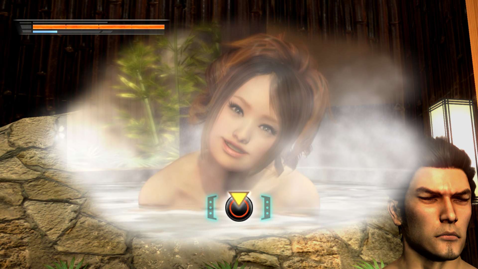 當玩家與酒店小姐分處於一牆之隔的男女浴池泡溫泉時,雖然必須謹守紳士風度不能隨便偷窺,不過還是可以連按〇鈕集中意識“想像”牆壁後意中人的入浴美姿。