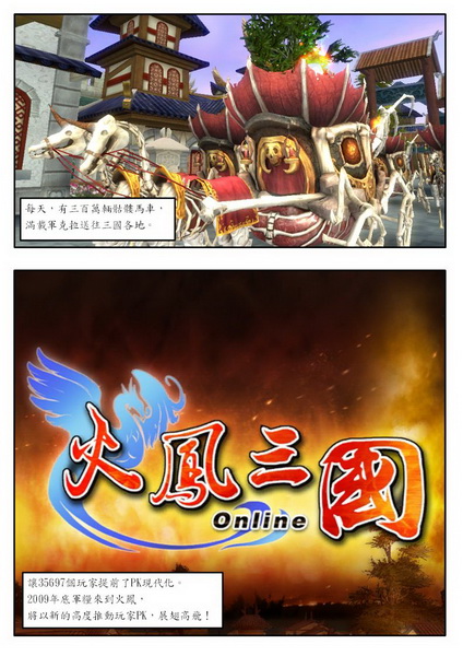 火鳳三國 Online》即將於 22 日公測,遊戲與捷元電腦、秀泰影城、人因科技等合作,將同步推出相關電腦、MP3 等周邊商品。