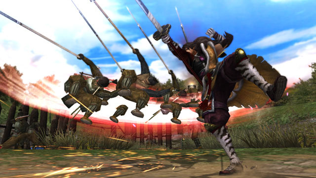 前田慶次則是 2 代登場的既有角色,同樣使用比人還高的超刀以及超刀與刀鞘結合而成的朱槍,施展豪邁爽快大開大闔的招式,招式的名稱反應了他多情不羈的性格。