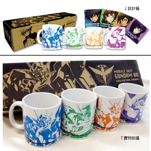 機動戰士鋼彈 00》馬克杯禮盒組內含4款馬克杯加杯墊,限量 200 套。