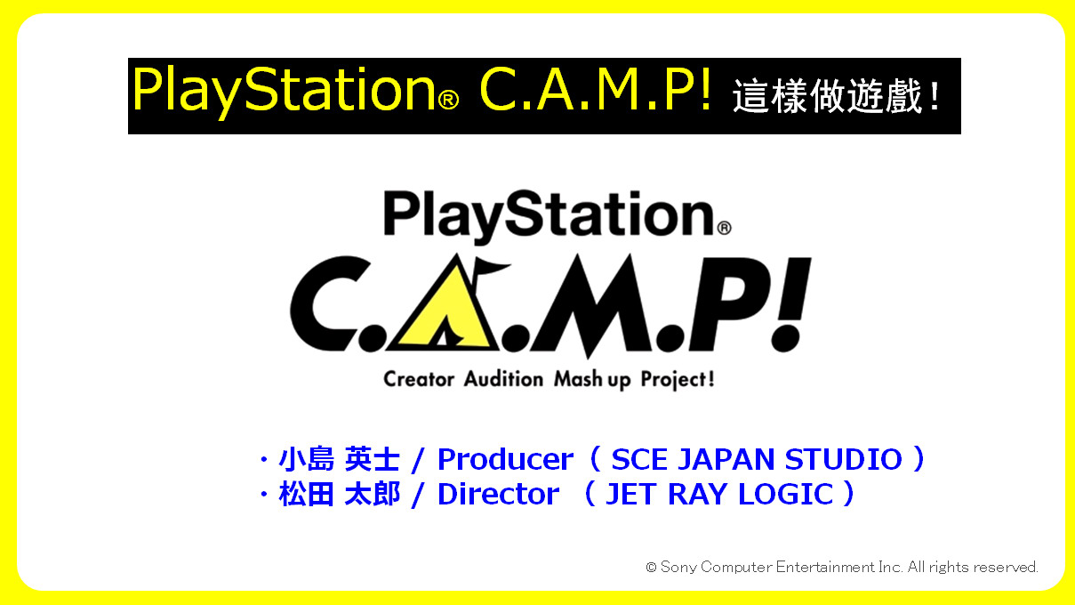 PlayStation C.A.M.P! 是透過報名甄選的方式,提供志從事遊戲創作者(不論專業或業餘)技術、設備與資金的支援,讓這些創作者能將創意點子製作成實際遊戲的計畫。