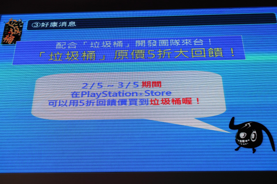 》的玩家能以更輕鬆的方式取得遊戲,SCET 也特別配合這次製作團隊來台訪問的行程,舉辦半價銷售活動,自即日起至 3 月 5 日前,玩家可以在 PlayStation Store 上以 5 折的優惠價格(原價 530 元)付費下載《
