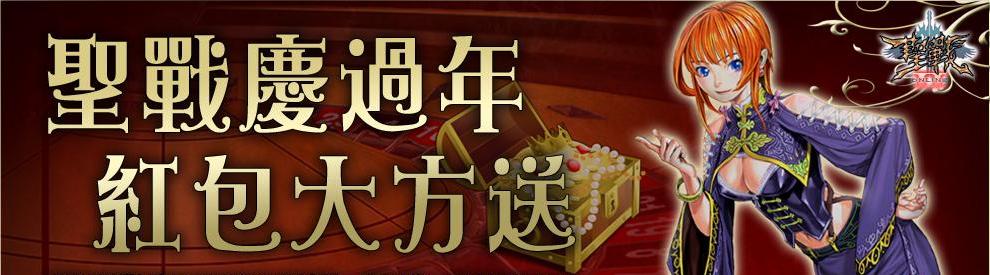 《聖戰2》大方送!無論是新手、老手都有新年好禮及專屬的禮物,再抽出100名幸運的玩家,贈送成長武器禮盒。同時,聖戰2同時台灣與香港同步舉行『聖戰話話話』活動,將送出「防爆冶煉石(神授)」、「5%祝福冶煉石(神授)」、「5%祝福冶煉石(合成)」、「華麗松樹」等…現在就快點回來並肩作戰吧!