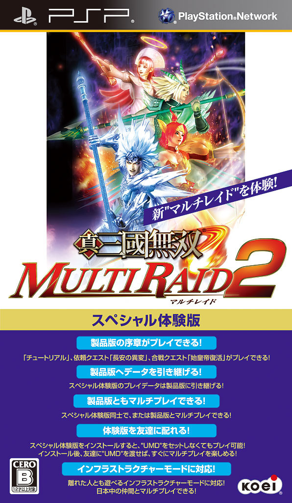 真‧三國無雙 連袂出擊 2》推出前最後 1 波的特別試玩版供玩家下載遊玩,後續預定於 3 月 4 日起在日本 PlayStation Network 釋出,3 月 8 日起在店頭發送特別試玩版 UMD 光碟。