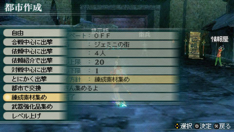 而「情報販」則是可以獲得任務製作所需要的情報,只要付出所需的仲介費,並指定好任務可獲得的武器與武幻精鍊素材,以及使用的地圖與登場的敵人屬性等條件,就可以自動製作出任務供玩家挑戰。製作出來的任務可以儲存起來後傳送給其他玩家挑戰。