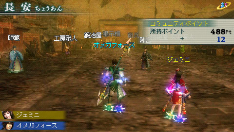 遊戲承襲系列作主要特色的連線功能,最多可 4 名玩家連線合作遊玩。除了透過 Ad Hoc 模式區域網路進行面對面連線之外,並新增支援 Infrastructure 模式網際網路進行遠端連線。當玩家進行合作遊玩、道具交易、武將交換、好友登錄等連線功能時,可獲得「社群點數」,後續可以使用這些社群點數來交換珍貴的「裝飾品」或「鍊成素材」。