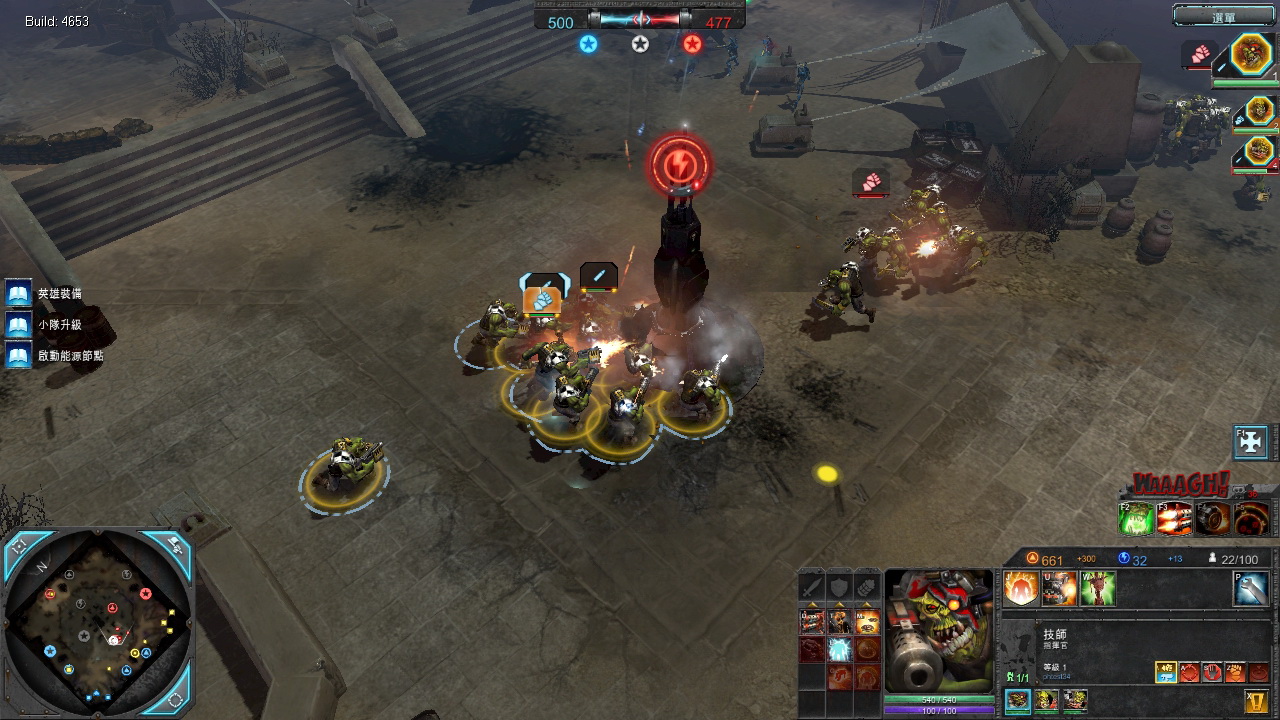 除了可以受益於衝鋒槍小子的「哇哈哈(Waaagh!!!)」加持之外,怪異小子施放技能必要的能量,可得靠其他作戰單位來補充,不過由於主要的攻擊技能「吱吱」和「次元污穢嘔吐」的攻擊都是不分敵我的,因此在攻擊時,難免會波及自己人,如果單獨拉開、獨立進行攻擊,反而更容易成為敵方狙殺的目標,這一點可得要特別注意。