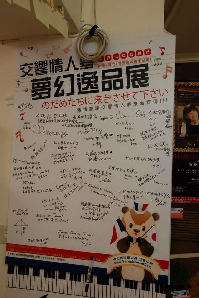 | 由主辦團隊特製的《交響情人夢》年表 | 粉絲側拍的照片 | 留言板將在活動結束後寄送至日本 |