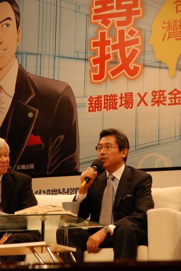 | (左至右)智富月刊總編輯 朱紀中、城邦集團執行長 何飛鵬、漫畫家 弘兼憲史、華頓投執行副總 毛元杰合影 |
