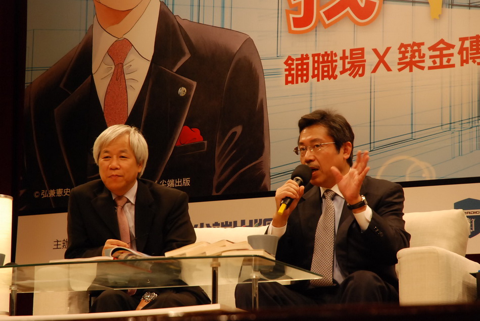 除了關於作品的問題之外,三位主講人也談到了許多與現今上班族在職場中所必須面對的一些問題。例如像是當面對職場競爭而演變成的人事鬥爭時,該如何解決?弘兼憲史表示他並不喜歡與人競爭,他比較喜歡與自己設定的目標競爭,當達成了自己預定的目標時,會發現似乎早已超越過其他競爭者。此外,像是在職場上常會遇到「貴人」,這點三人則共同都認為,所謂的「貴人」是由自己所掌握的,唯有自己肯努力,貴人才會於適當的時候跳出來幫助你完成夢想。