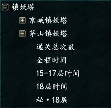 茅山鎮妖塔排行榜將記錄玩家通關的總次數、全程時間、15-17層時間、18層時間、秘18層時間。玩家順利通關後,或玩家打破排行榜的記錄,系統都會向全區域發送廣播。而且在打通鎮妖塔的隊伍中,有可能以隊長命名的NPC使者出現在鎮妖塔中,為以後進入鎮妖塔的玩家提供狀態獎勵。無限榮耀在險峰,當您和隊友的名字鐫刻在排行榜上,也將激勵著後來的修道者繼續為挑戰記錄而努力!