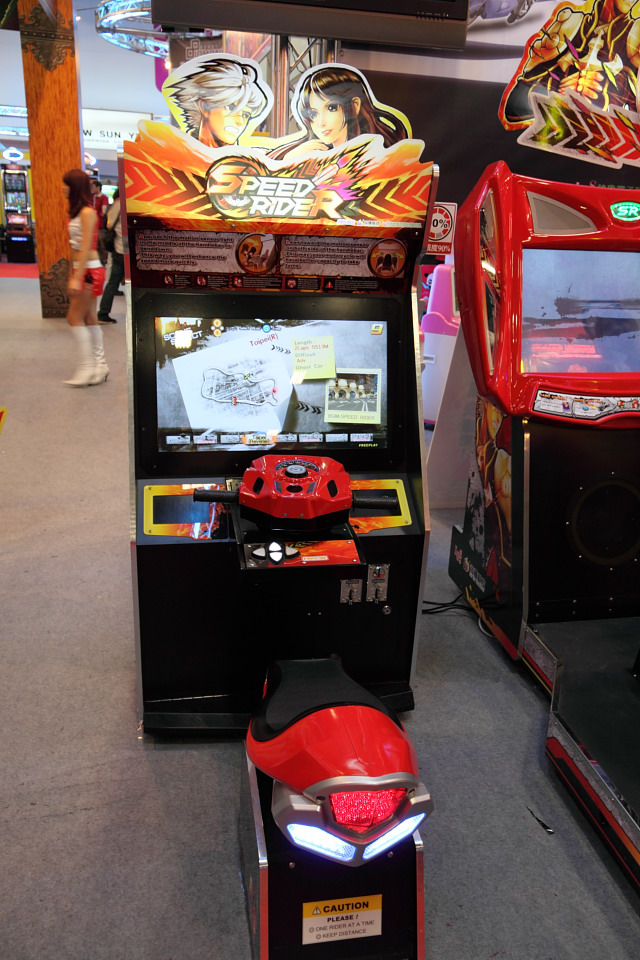 不只是合作開發的作品,現場也展出一系列由鈊象電子自製研發的大型電玩機檯,類型相當多樣化,像是延伸自同名線上遊戲的《唯舞獨尊》,首款以打擊樂器鐵琴為題材的《鐵琴》,4 輪競速賽車類型的《極速 3》與 2 輪競速體感操控的《極速摩托》等。