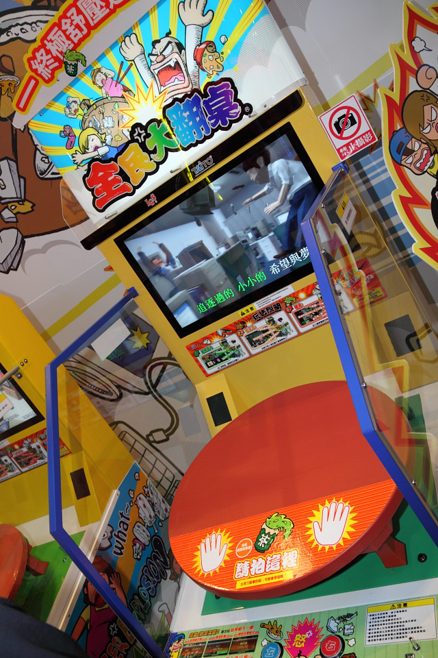 《全民大翻桌(超・ちゃぶ台返し!)》是款以眾所皆知的誇張化情緒反應「翻桌」為題材的大型電玩遊戲,讓玩家透過和式小圓桌造型的控制裝置,以拍桌與翻桌的動作來紓解平日因為「孤獨」、「不安」、「不滿」、「煩惱」等負面情緒所累積的壓力。