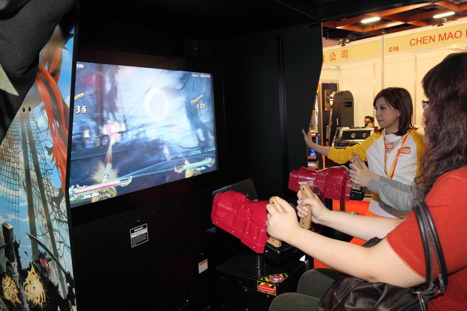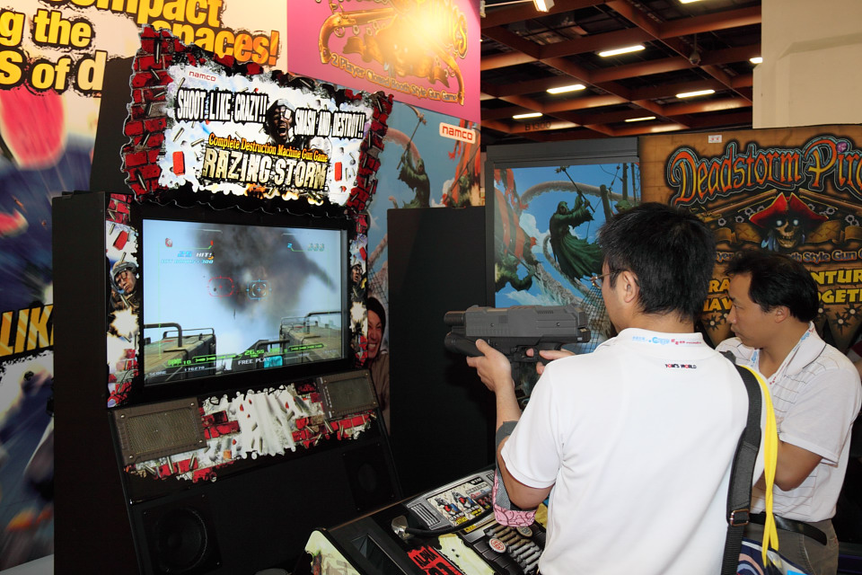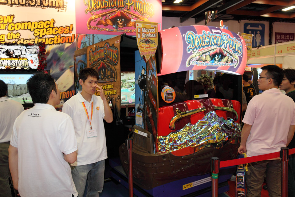 《死亡風暴海盜》是款以海盜黃金時代為背景的座艙型光線槍射擊遊戲,遊玩時玩家將進入座艙型的框體中操作固定式的光線槍,體驗在激流中的小船、礦坑中的軌道台車或大海上航行的海盜船上,以火槍來對抗侵襲而來的食人魚、海盜亡靈、大海怪等敵人,或是以大砲與敵艦展開激烈砲擊戰的樂趣,畫面同樣採用高解析度 3D 繪圖方式構成。