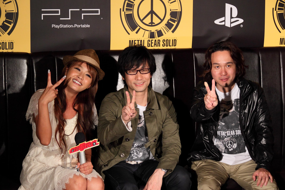 | 小嫻與《潛龍諜影》系列遊戲總監小島秀夫、美術總監新川洋司合影 |
