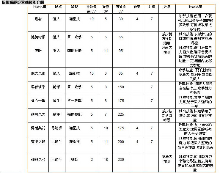 ◆ 新二轉:槍手、弓箭手