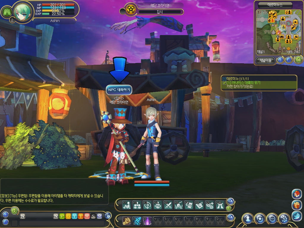 | 在新手教學模式內,跟NPC對話後接到新手任務 |