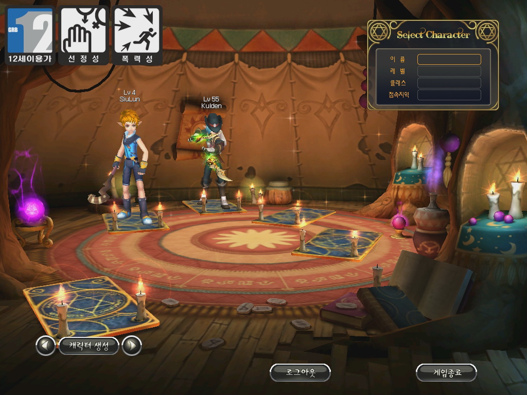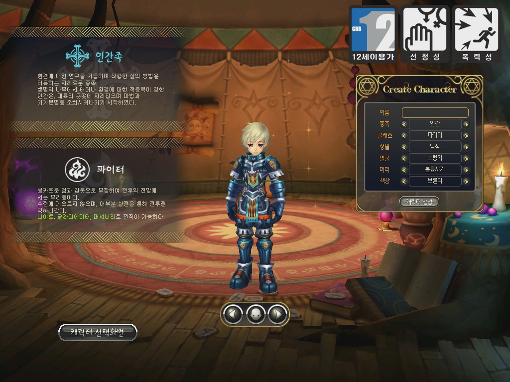 | 創立角色時可選擇種族、職業、性別、表情、髮型、髮色 |