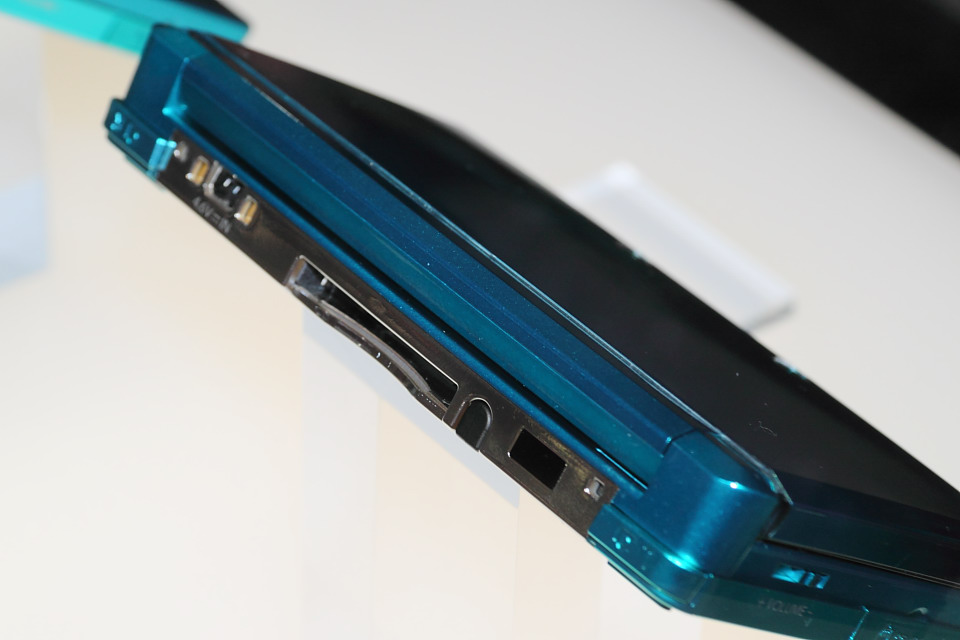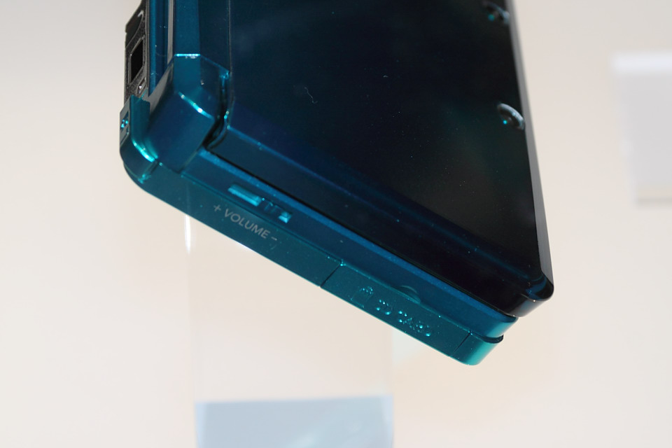 上螢幕右側配置有調整 3D 立體顯示景深強弱的微調滑桿,越往上調畫面立體感會越強烈(雙眼視差加大),越往下調畫面立體感會越微弱(雙眼視差減小),調到最底時會關閉 3D 顯示切換為 2D 顯示。玩家可以根據自己的喜好來微調 3D 立體顯示效果。不過滑桿的調整功能必須配合遊戲軟體設計,現場展示的遊戲軟體有部分會強制維持 3D 模式,無法調整或關閉。當遊戲軟體以 3D 模式運作時,上螢幕右側的 3D 指示燈會亮起。