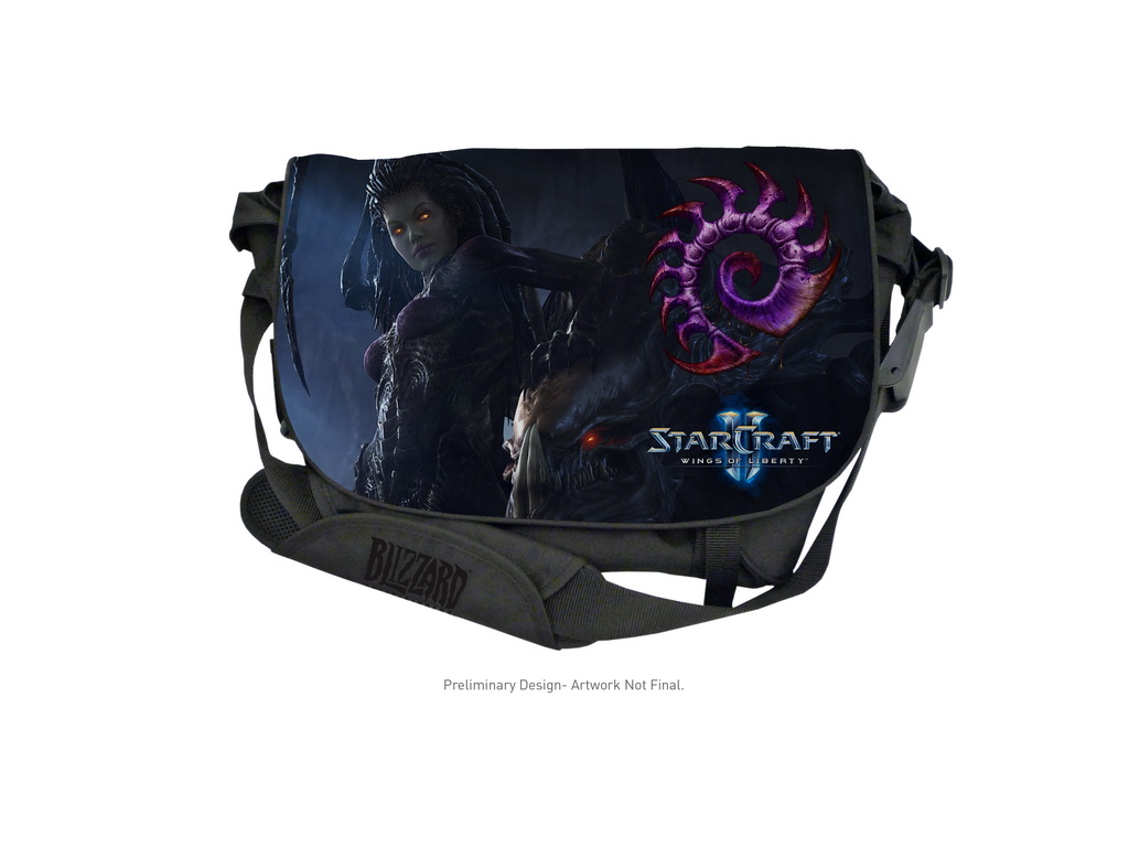 星海爭霸 2:自由之翼》信差包強調抗撕扯、抗天候的重型 1680D 防衝擊尼龍纖維外殼,採單肩斜背設計,內有放置筆記型電腦、遊戲周邊裝置及可攜式遊戲裝置的隔間,與內裡襯墊可保護電子裝置,希望讓玩家可透過時尚的方式來保護各項遊戲裝備。